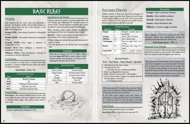 By the time I decided to do the Kickstarter (5 years after starting) I had made a number of refinements from playtesting- there was too much going on as a GM to make the game enjoyable. So I worked on altering the system so that the players would perform the majority of rolls. It keeps them mechanically engaged and allows the GM to focus on the story and the environment. For the game feel it was important to get across a sense of player power and player agency. By spending a characters “HP” players could succeed otherwise failed rolls. So a player could mitigate their risks and avoid getting “cheated by the dice” by managing their own resources. It creates great game feel moments and empowers players to do heroic things.