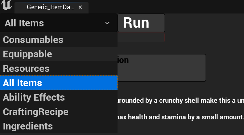 During incubation I put together a small editor tool to help me manage items, ingredients and status effects. The goal was to create an at a glance THE source of truth for what was in engine. I was the primary user but QA was able to leverage it to good success.